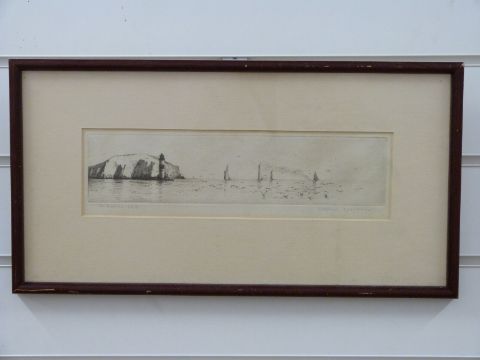Rowland Langmaid signed nautical engraving 'The Needles, Isle of Wight' 8 x 30cm