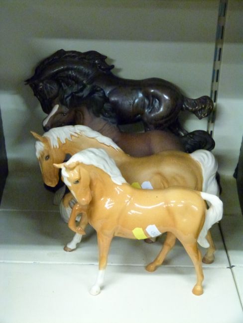 Four Beswick horses including bronze large Shire, matt cantering Shire and two palominos