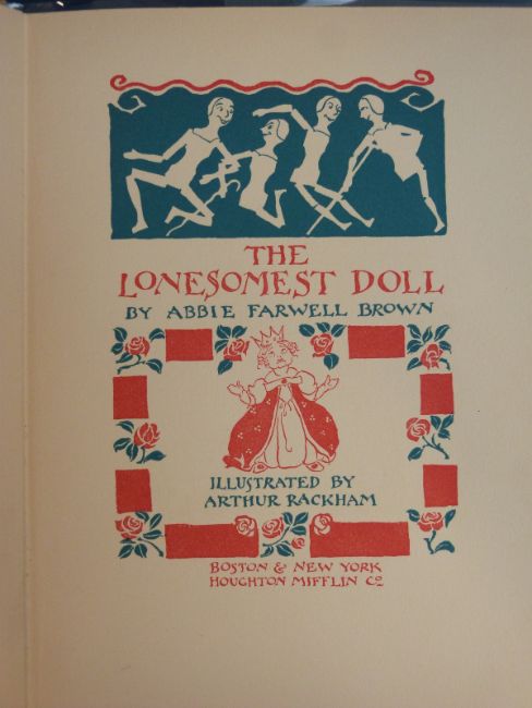 Arthur Rackham illustrated Abbie Farwell Brown, The Lonesomest Doll (Boston, Houghton Mufflin, 1928) four rose and turquoise, 30 black and white drawings, tan pictorial cloth. This book was not published in the UK. First edition, first printing
