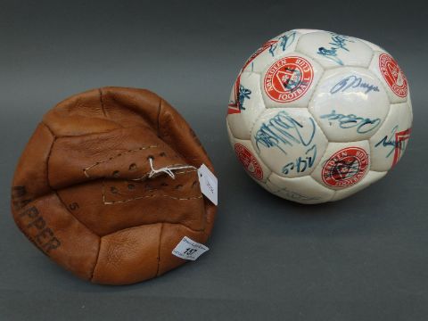 A signed Aberdeen Football Club football together with a vintage brown leather ball