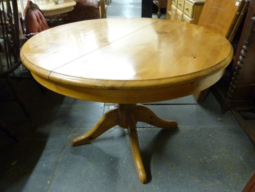A pine kitchen table, diameter 108cm