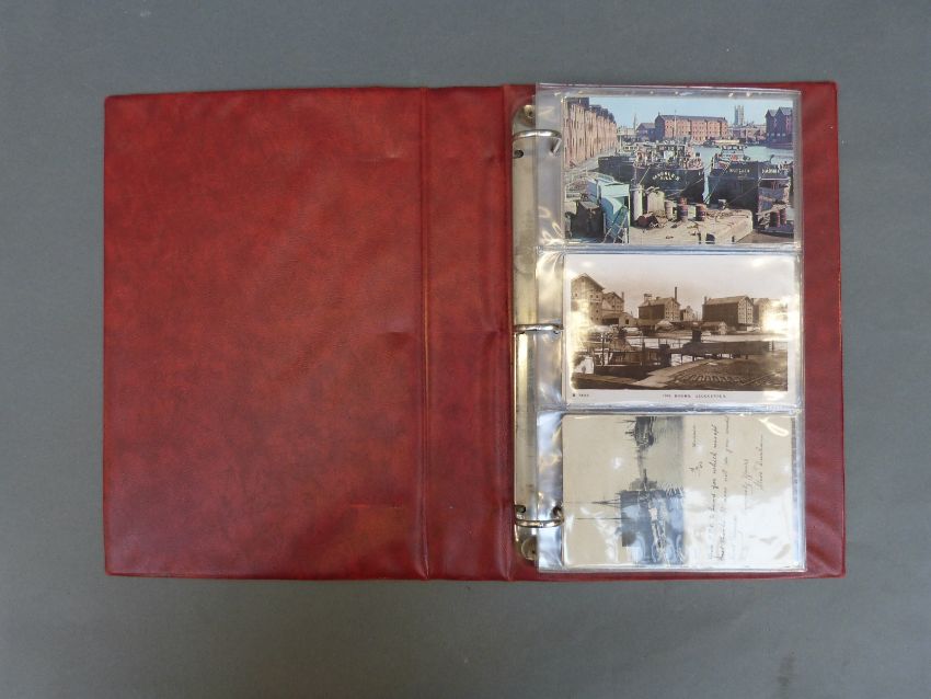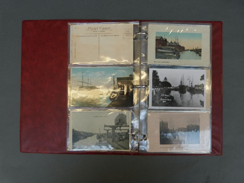 A postcard album with approximately 50 postcards relating to the Gloucester-Sharpness canal, mostly first quarter 20thC