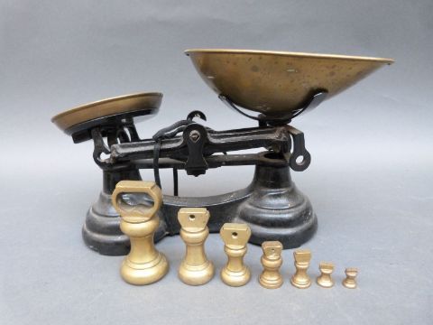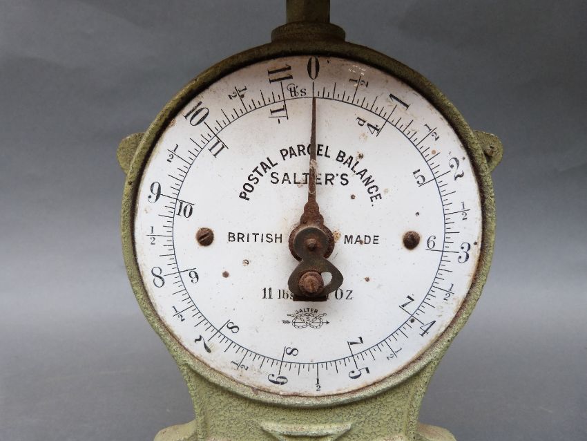 Librasco postal scales with brass weights together with a Postal Parcel Balance by Salter's and a cased set of brass balance scales with weights