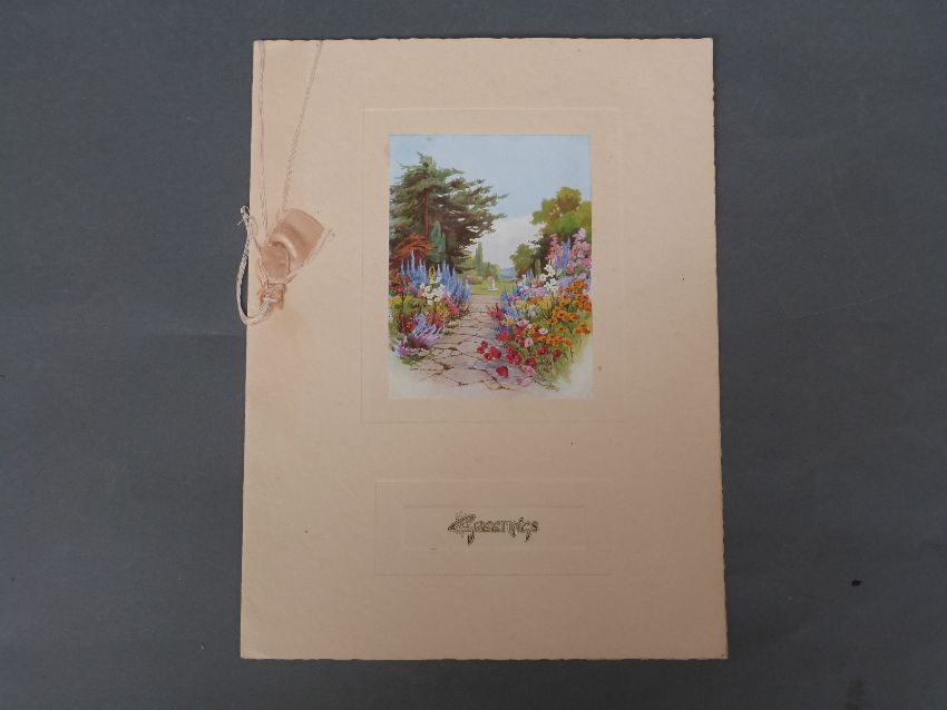 Queen Mary Christmas greeting card 1932, signed in ink Mary R 1932-3, with a mounted illustration after a painting in the possession of the Queen. 32 x 24cm.