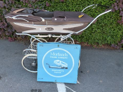 A Silver Cross pram with two tone brown body and Marlands pram canopy in original box