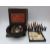 Jeu De Roulette set in original box together with a turned wooden chess set, bezique counter, bone gaming counters, mother of pearl markers etc