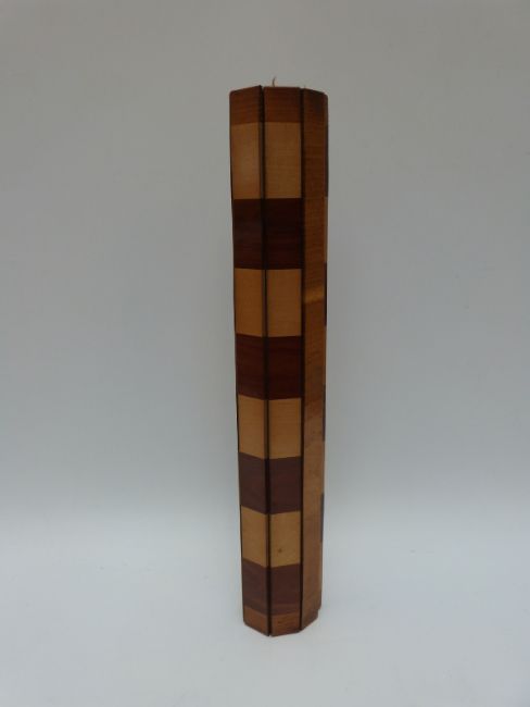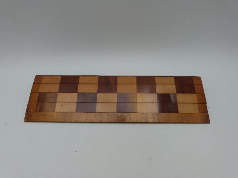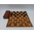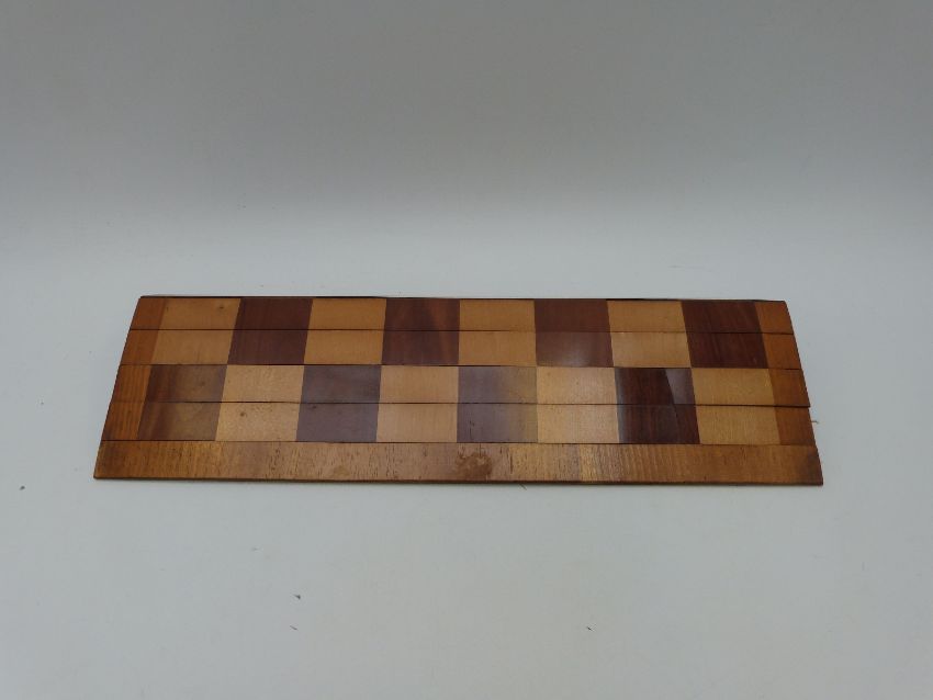 A mahogany and olive wood folding campaign chess board, together with a set of turned wooden draughts in mahogany box