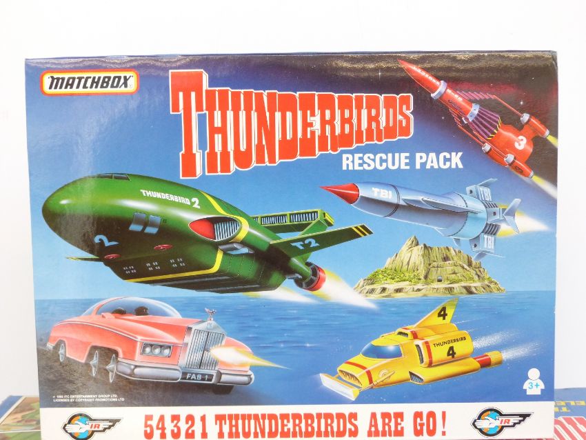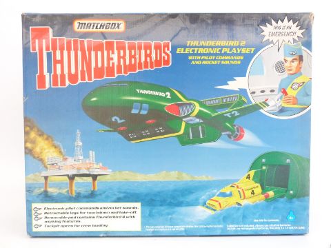 Twelve Matchbox Thunderbirds diecast model vehicles and playsets including Thunderbirds 2 Electronic Playset, Rescue Pack etc, all in original boxes