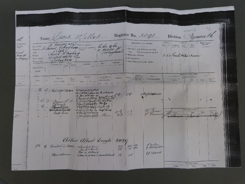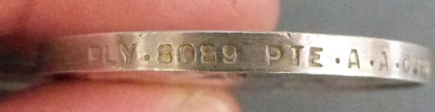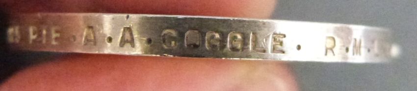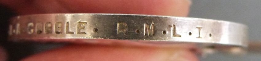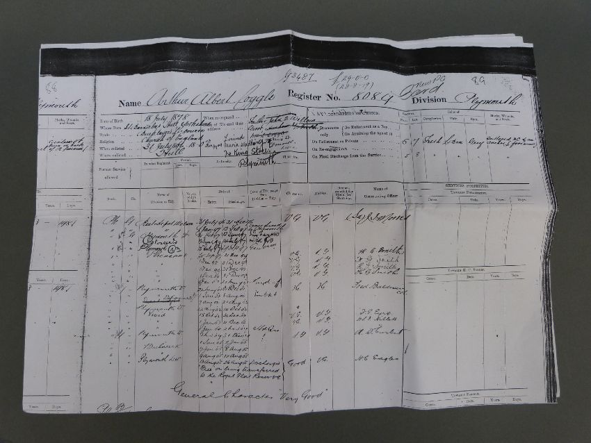 WWI medal awarded to Ply 8089 Pte A A Coggle RMLI with a copy of his service record