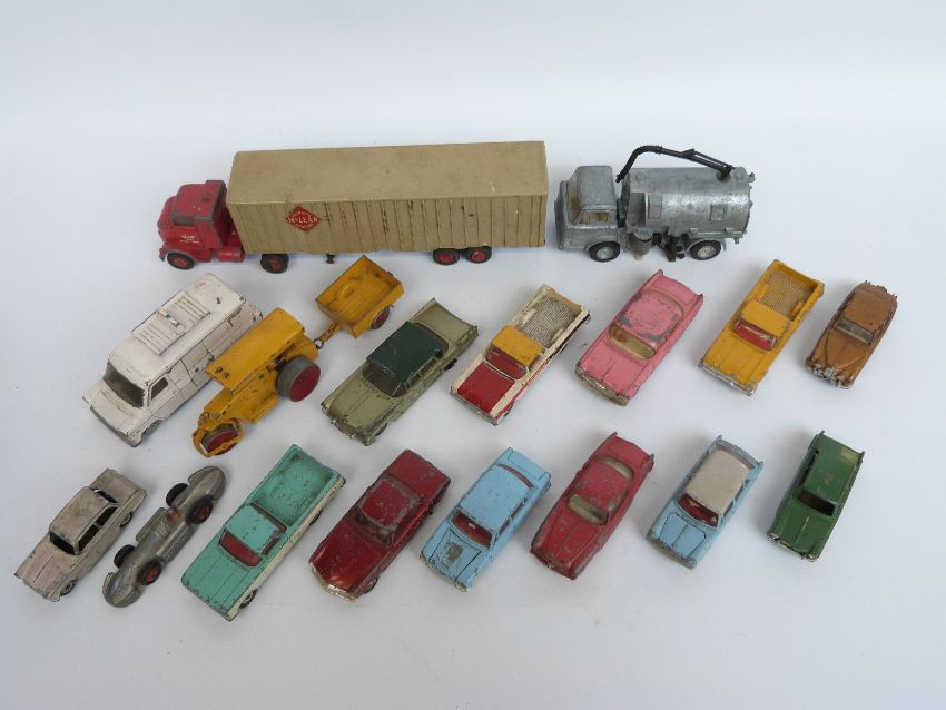 Eighteen Dinky Toys, Dinky Supertoys and Spot-On diecast model vehicles including Speed of the Wind racing car 23E