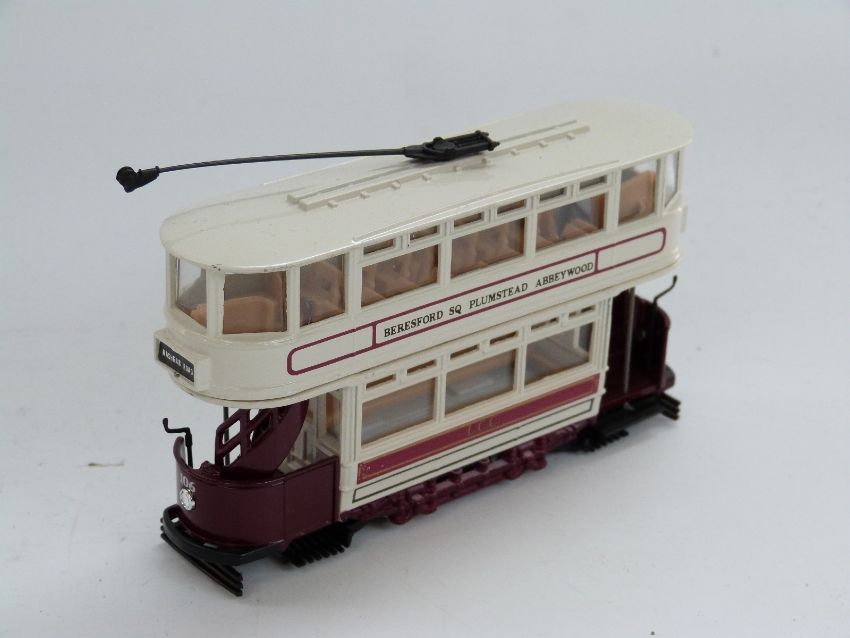 Twenty-two Corgi diecast model buses, trams and commercial vehicles including EFE, OOC, Classics etc., some in original boxes