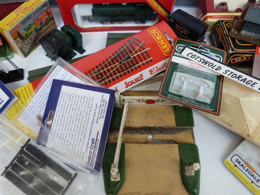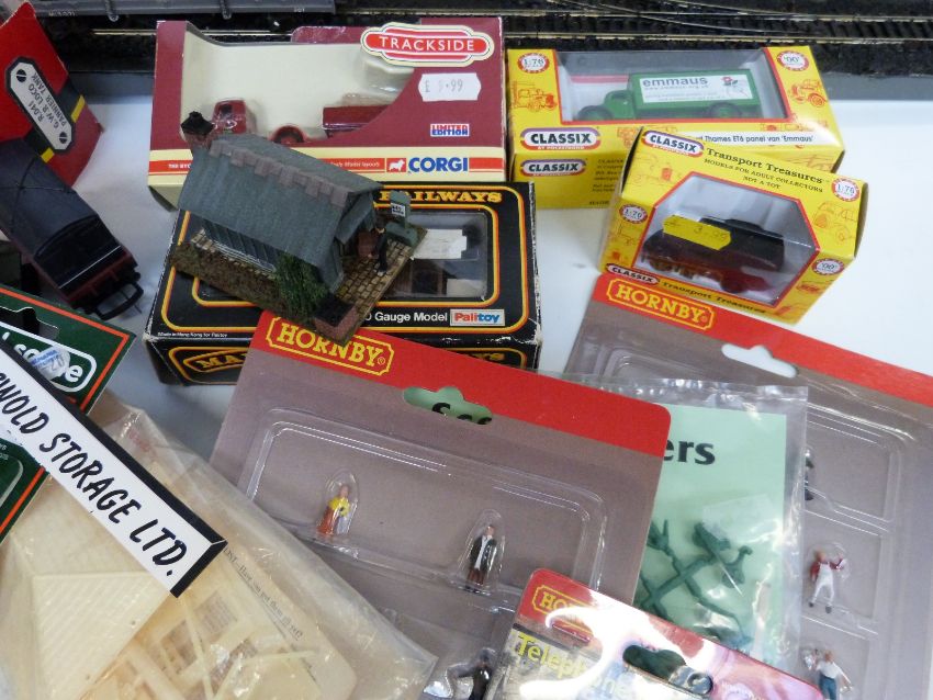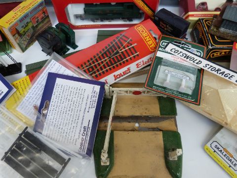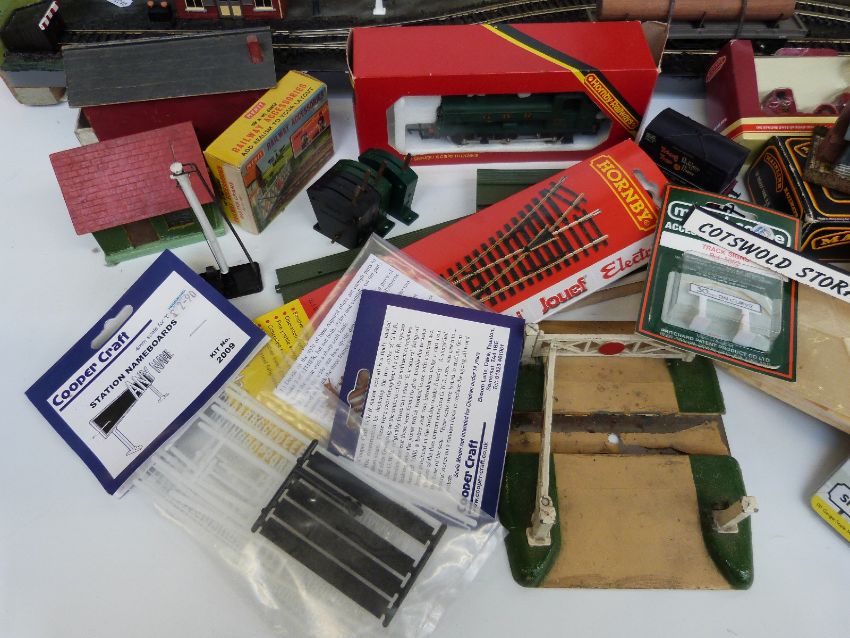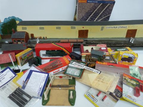 A collection of Hornby, Mainline and similar 00 gauge locomotives, wagons, buildings, scenery and accesories, some in original boxes, together with a scratch-built shunters' yard diorama