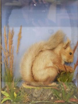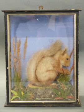 A cased taxidermy study of a red squirrel, 36cm x 26cm