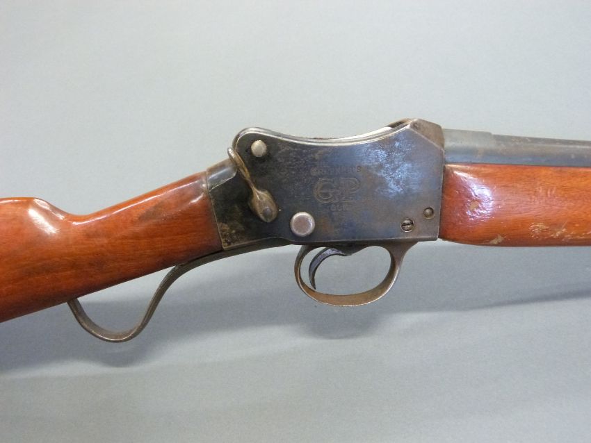 Greener GP 12 bore shotgun with Winchester type underlever action and 25 inch barrel, overall length 108cm, length of pull 37cm, serial number 48023. PLEASE NOTE THAT A VALID RELEVANT FIREARMS/SHOTGUN CERTIFICATE IS REQUIRED TO HANDLE/PURCHASE THIS ITEM.