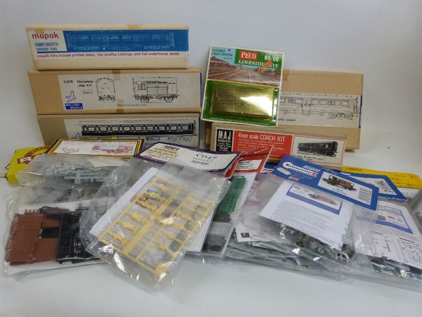 Twenty-two Mallard, Ratio, MAJ, Mowpok, Peco, Kitmaster and similar wooden and plastic model kits, all in original boxes / packaging