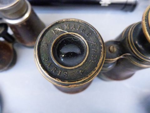 A three draw 'Scouter' telescope by USI London and a quantity of binoculars, horse glasses etc