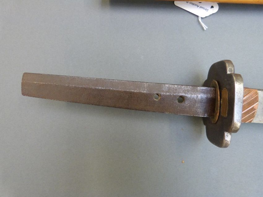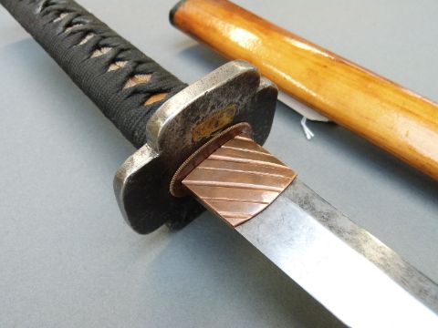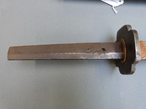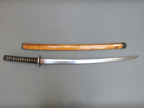 Japanese Edo period katana with dragonfly decoration, in wooden scabbard