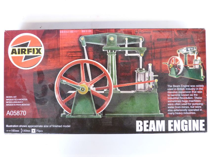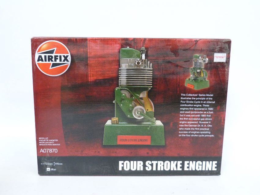 Three Airfix model engine kits 1827 Paddle Steamer Engine A08870, Four Stroke Engine A07870 and Beam Engine A05870, all in original boxes