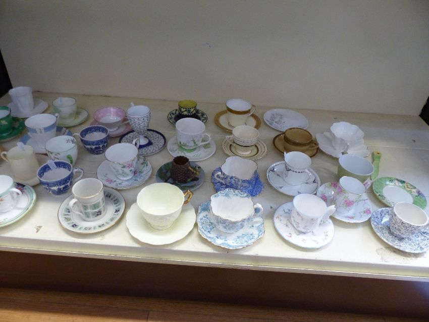 A collection of decorative collectable cups and saucers including Royal Worcester, Aynsley, Royal Winton, Art Deco, Foley, Shelley, Royal Doulton, continental example etc (approximately 28)
