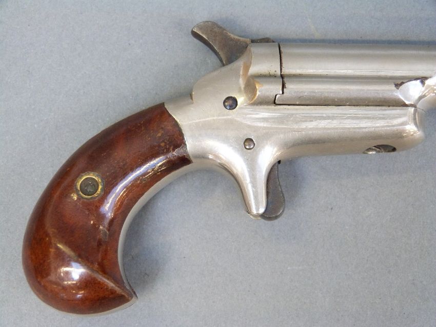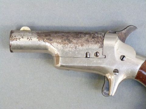 Colt No 3 .41 rimfire pocket pistol with shaped walnut grips and 2.5 inch barrel engraved to the top 'Colt' overall length 13.5cm.