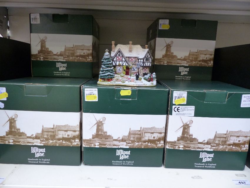 Eight larger green boxed Lilliput Lane cottages to include Lead Kindly Light, The Three Kings, Christmas Cake etc some with illumination features, with certificates
