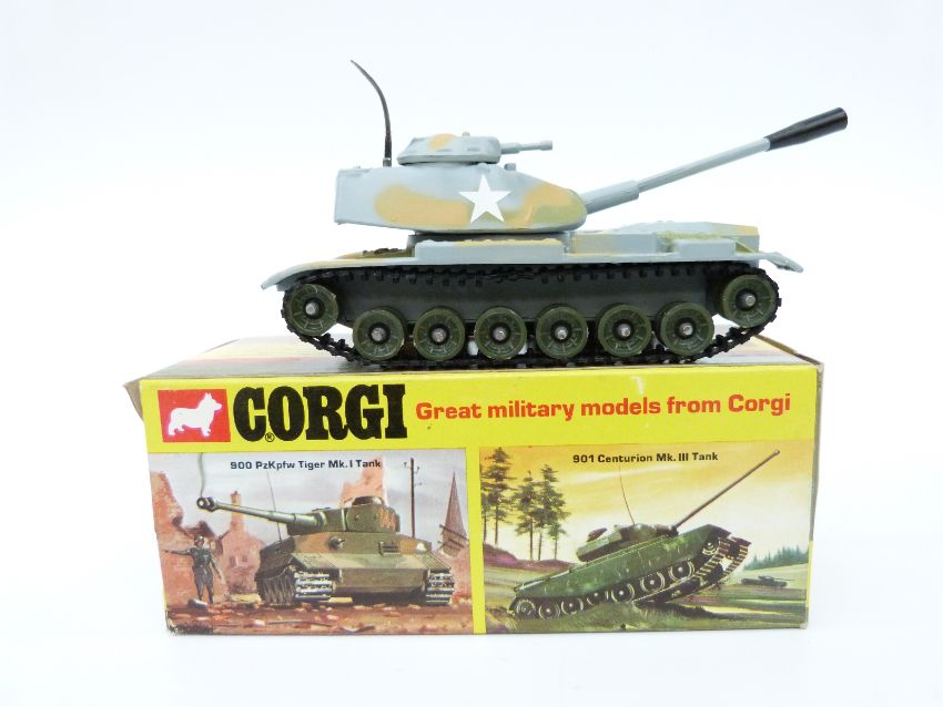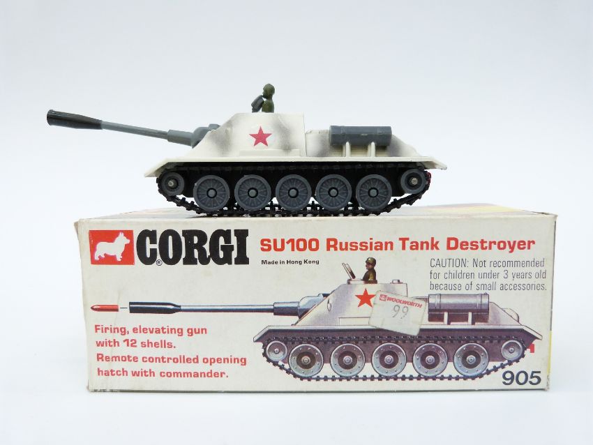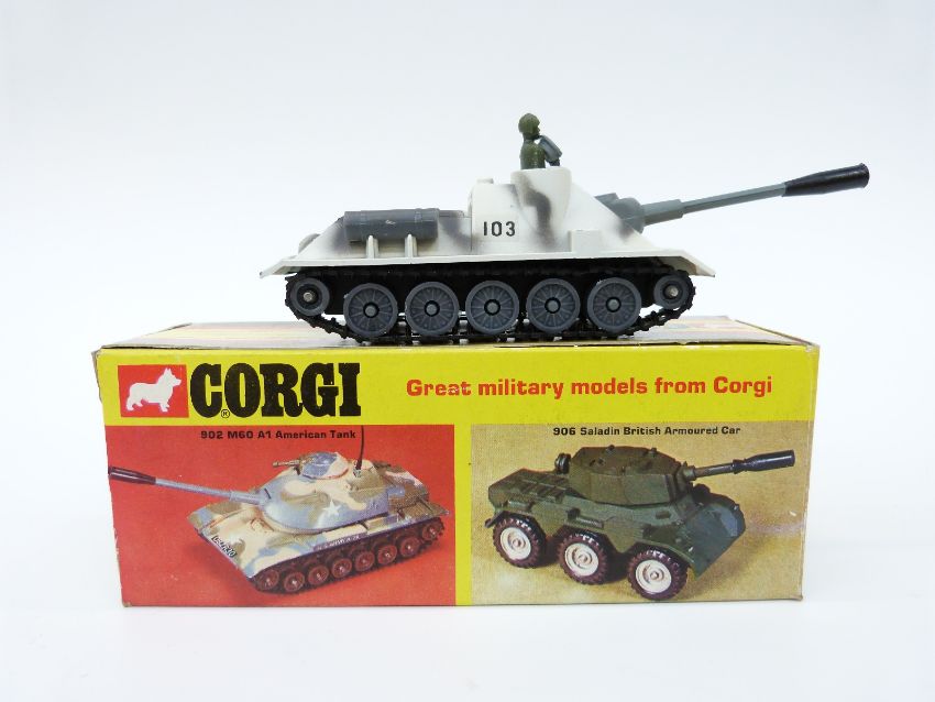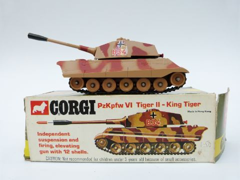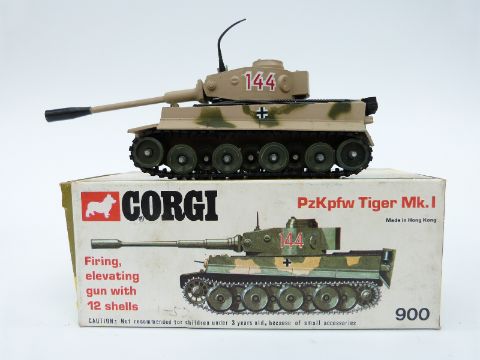 Six Corgi Toys diecast model military vehicles, PzKpfw Tiger Mk.I 900, Centurion Mk.III 901, M6A1 Medium Tank 902, Chieftain Tank 903, King Tiger Tank 904 and SU100 Russian Tank Destroyer 905, all in original boxes