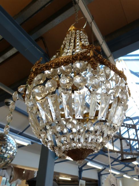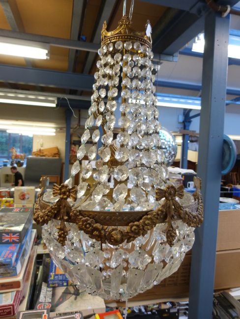A glass chandelier, approximate diameter 30cm, drop 50cm
