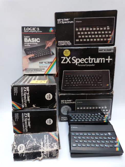Seven Sinclair ZX Spectrum personal computers, all in original boxes