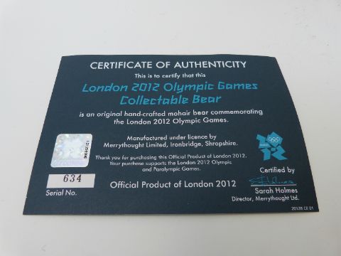 Merrythought London 2012 Olympic Games Bear, with certificate of authenticity together with an early mohair bear, 35cm tall