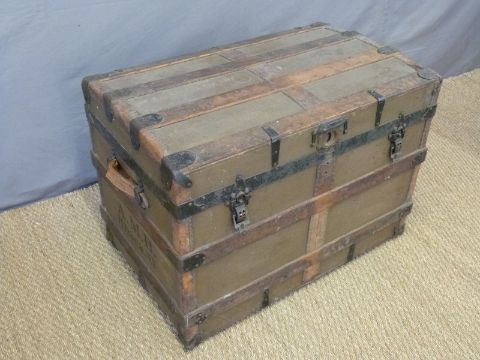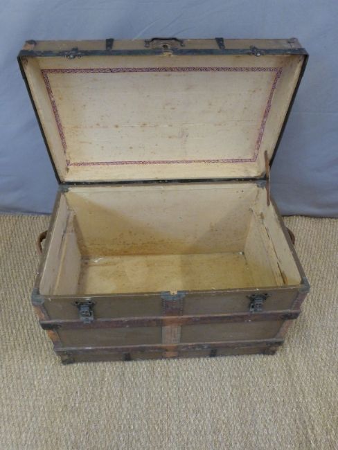 An ash and metal bound trunk with leather handles, W82 x D52 x H60cm