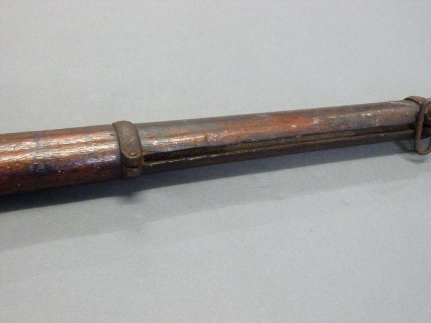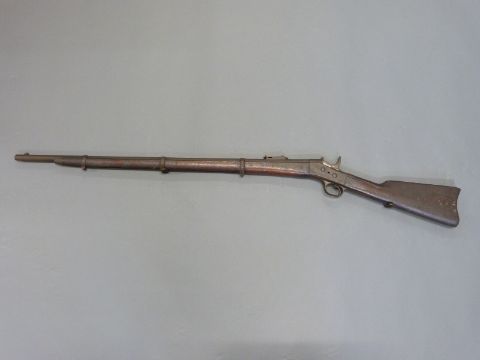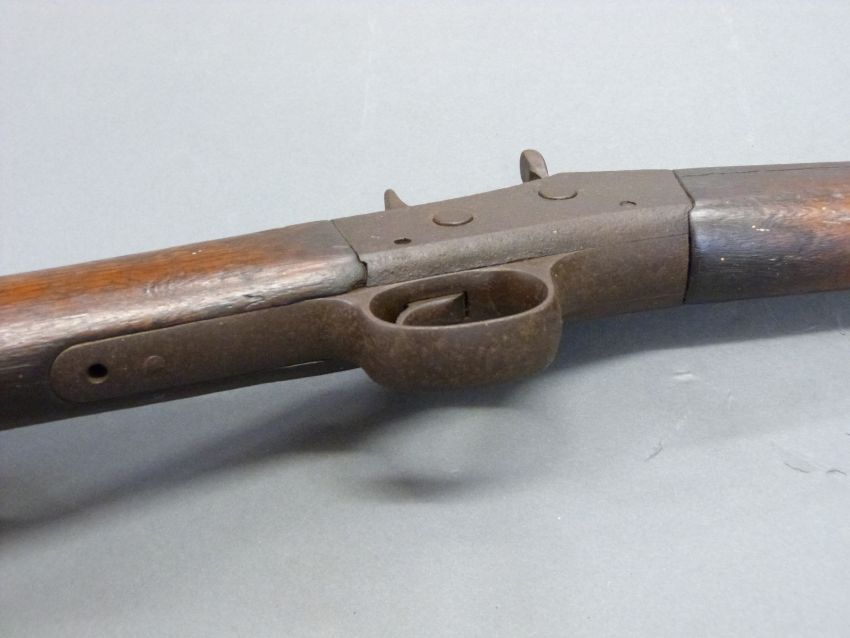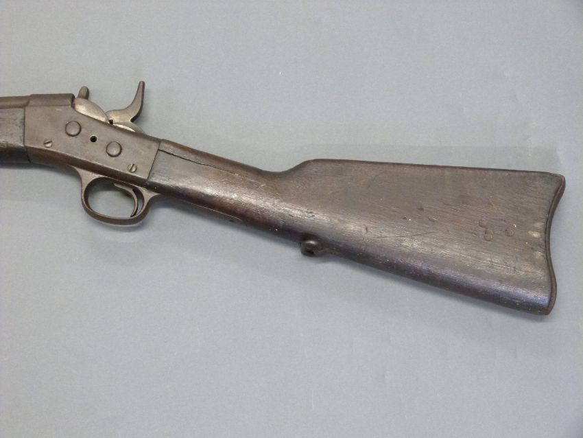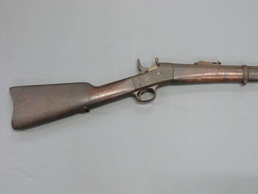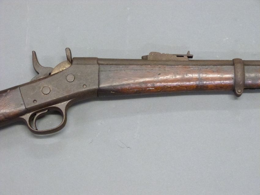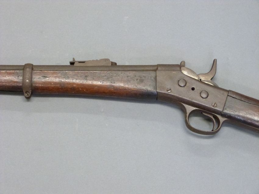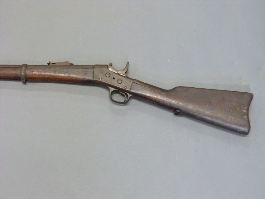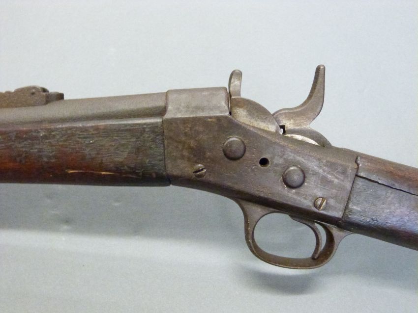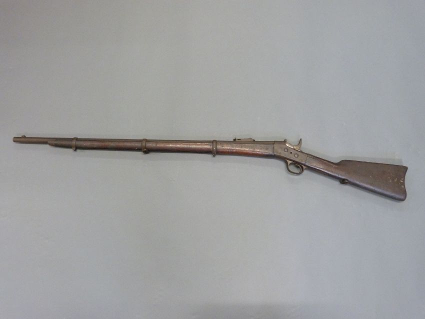 Remmington .43 rolling block rifle with steel mounts, trigger guard and butt plate, script to top plate and 35 inch barrel, overall length 127cm.