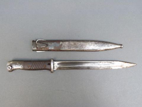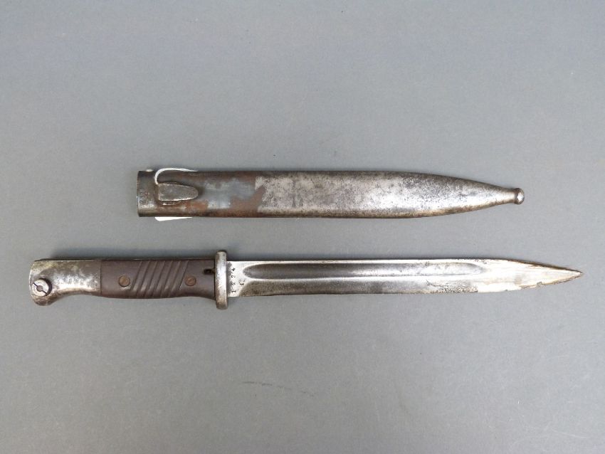 German WWII K98 bayonet marked Gebr Heller to blade and stamped to scabbard fze 42
