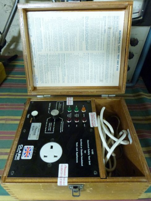 A quantity of electrical test equipment including a Megger safety tester
