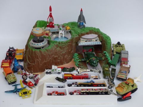 Thunderbirds Tracy Island together with related accessories and a collection of diecast model vehicles