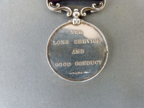 Victorian long service and good conduct medal awarded to 592 Sergt J Fant, D.S.R.A (District Staff Royal Artillery)