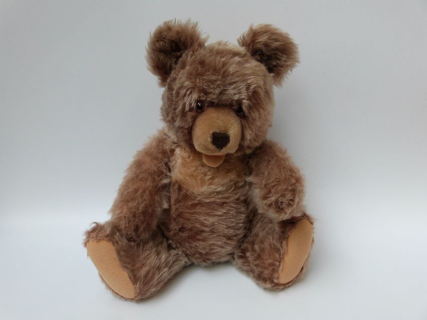 Steiff Zotty Teddy Bear with cinnamon mohair body, blonde mohair chest, shaved snout, open mouth, jointed limbs and growler, 44cm tall.