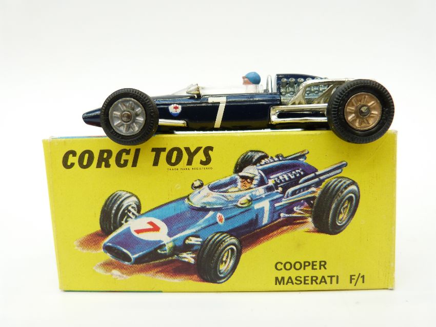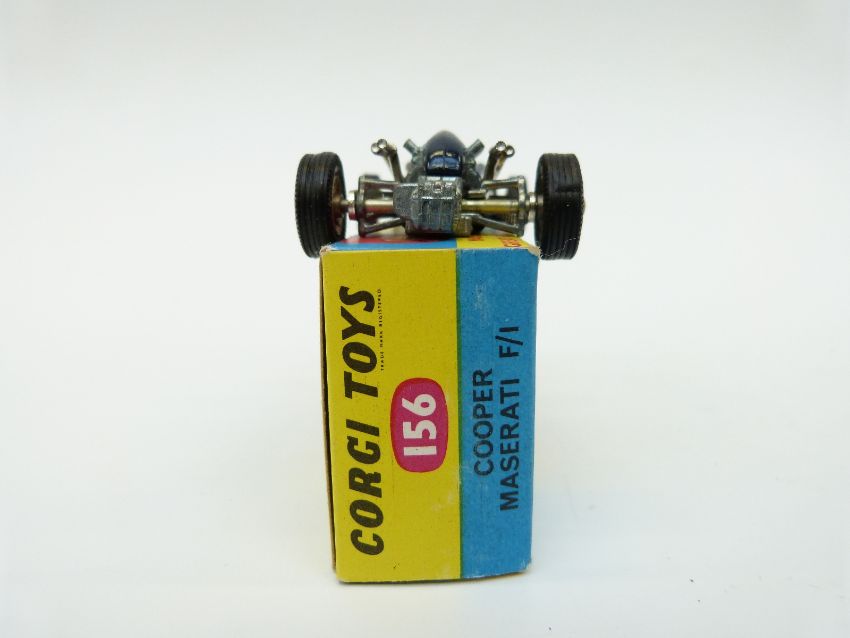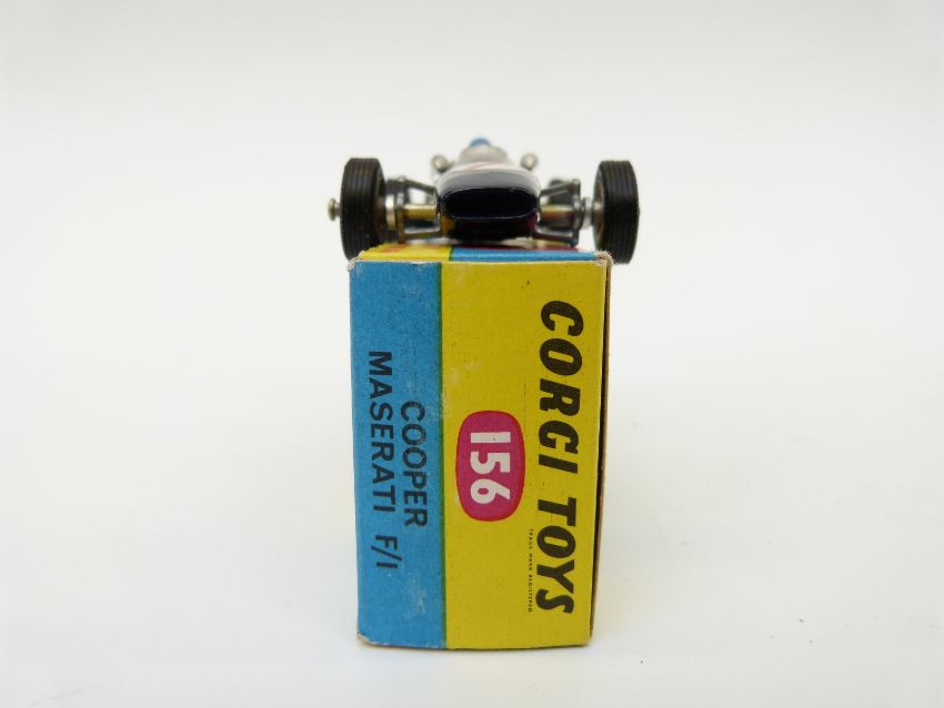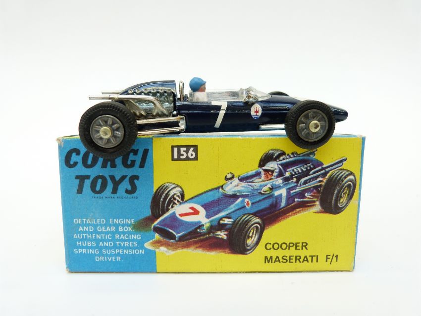 Corgi Toys diecast model Cooper Maserati F/1 with blue body, white driver and racing number 7, 156 in original box
