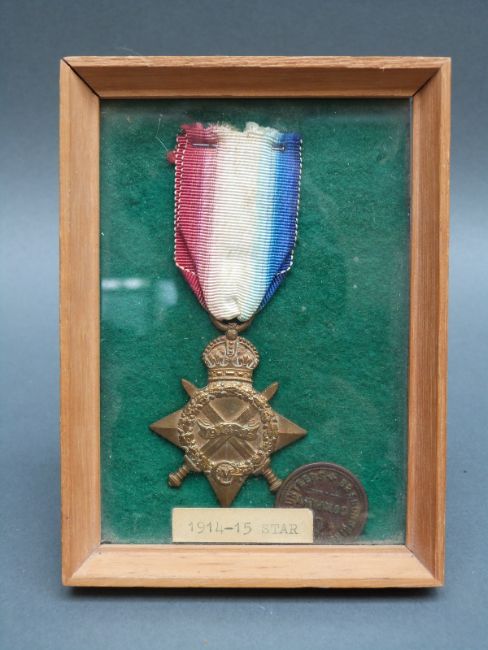 A WWI 1914-15 star awarded to No1005 RFMN Sardar Khan 1/125/RFLS and a 3rd Breconshire Rifle Volunteers C Company token numbered 102