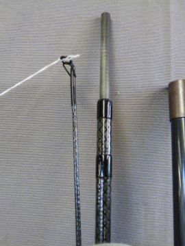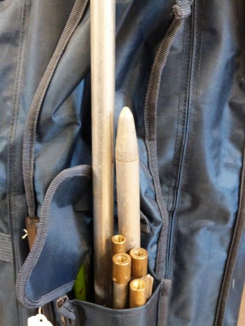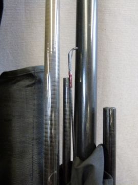 Coarse fishing rods in a holdall including Bluefox 13' by Normark, Silstar Evolution Match 420, Masterline 14' Master Match, Airflo Classic coarse, Powermesh Carp, Browning Aggressor, bank sticks and a landing net handle