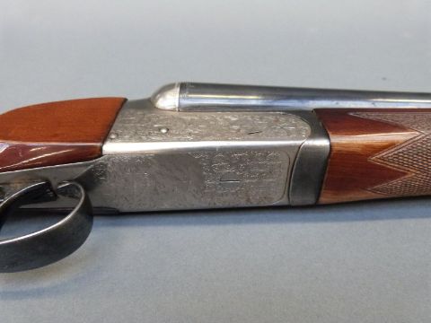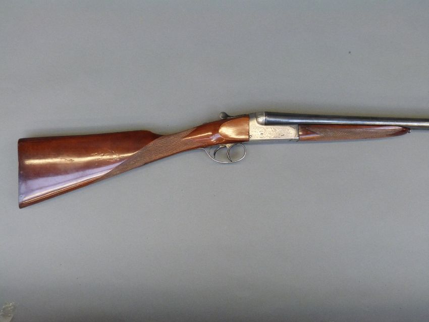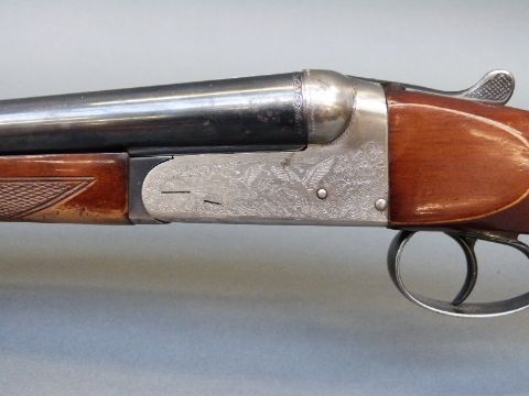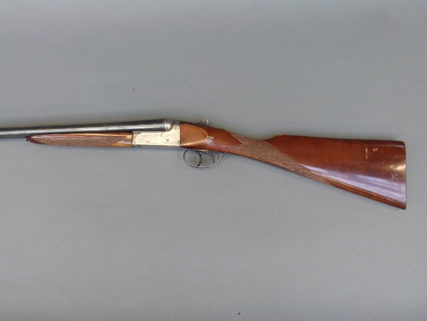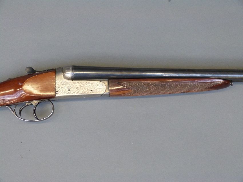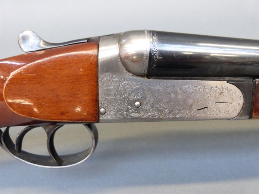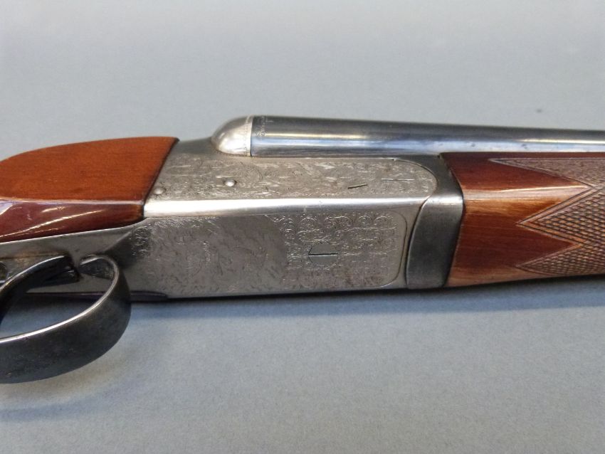 Gunmark Kestrel 20 bore side by side shotgun with scenes of wildlfowl engraved to the locks, engraved trigger guard, top lever and barrels, chequered grip, double trigger and 27 inch barrels, overall length 112cm, serial number 354269. PLEASE NOTE THAT A VALID RELEVANT FIREARMS/SHOTGUN CERTIFICATE IS REQUIRED TO HANDLE/PURCHASE THIS ITEM.