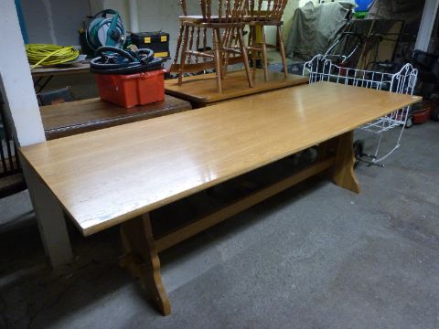 A contemporary light oak dining table, L245 x W85 x H74cm