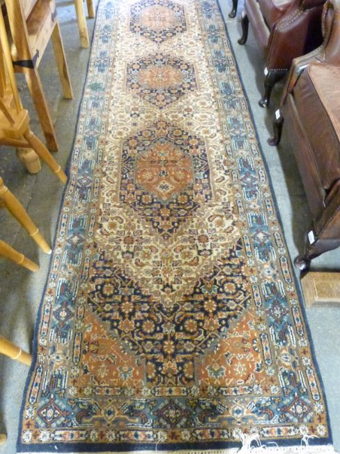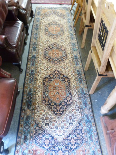 A wool runner with three guls, 340 x 85cm