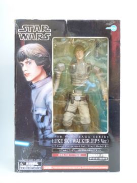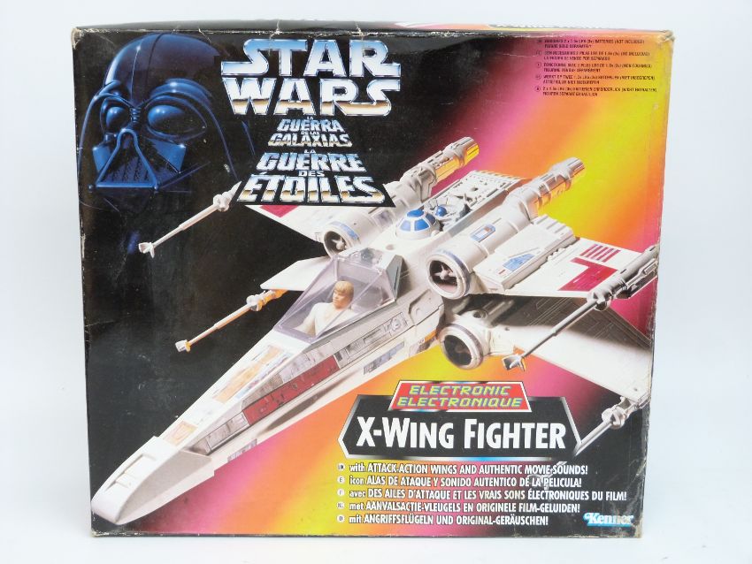 Three Star Wars model action figures and vehicles comprising Kenner Electronic X-Wing Fighter, Airfix Saga Series Snap Fit, Luke Skywalker and Hasbro 2 in 1 Anekin to Darth Vader, all in original boxes