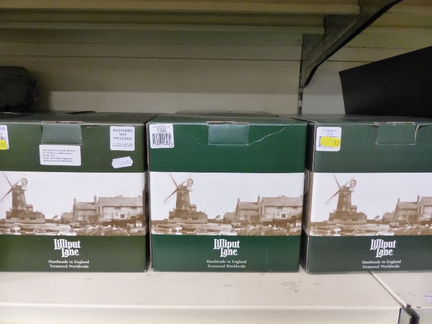 Ten dark green boxed 'larger' Lilliput Lane cottages to include Victorian Romance, Christmas Time and Christmas Shopping, some with illuminations