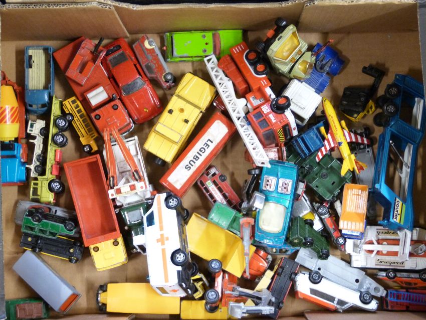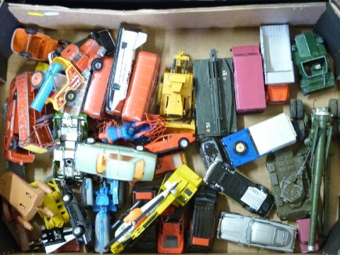 Ninety Corgi, Matchbox, Spot-on, Crescent, Budgie, Britains and similar diecast model vehicles including military, Superkings, aeroplanes, buses etc