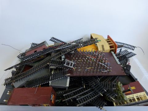 A large collection of Hornby Dublo and similar 00 gauge carriages, wagons, buildings and accessories