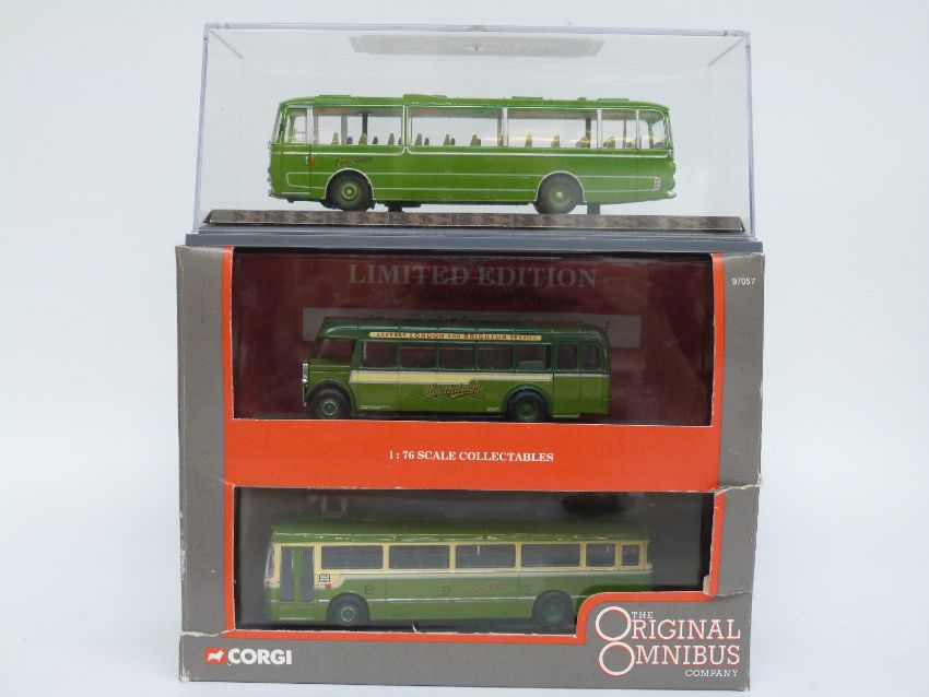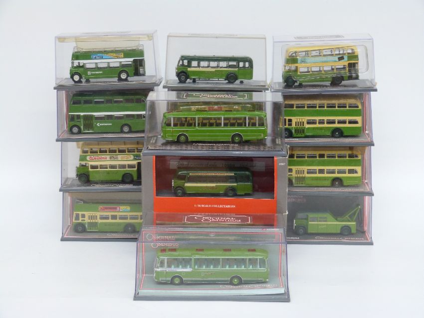 Sixteen Corgi Original Omnibus Company (OOC) diecast model buses and coaches, some limited edition, all in original boxes, includes one double set
