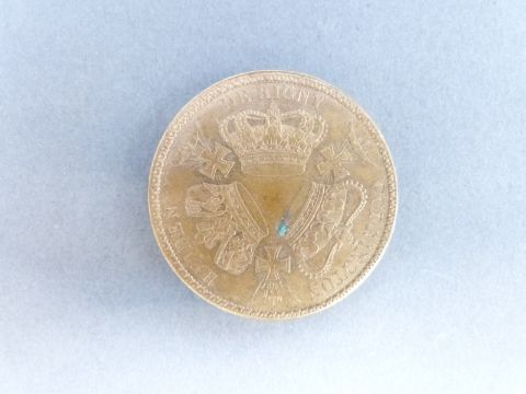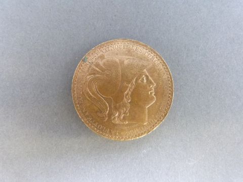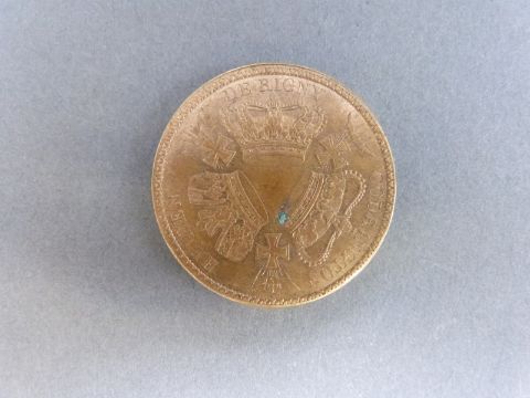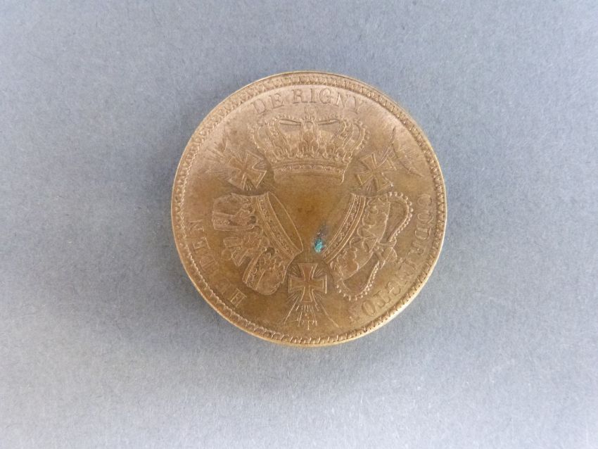 A medal coin commemorating the Anglo, French, Russian Fleets defeating the Turks at Navarin 20th October 1827, head of the Athena obverse, three crowns with ships and crosses in angles to reverse
