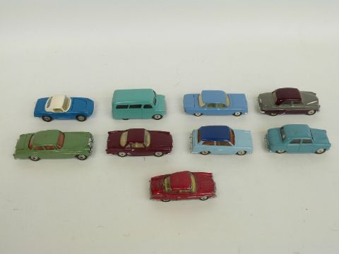 Nine Corgi Toys diecast model vehicles including Bedford, Bentley, Lotus etc