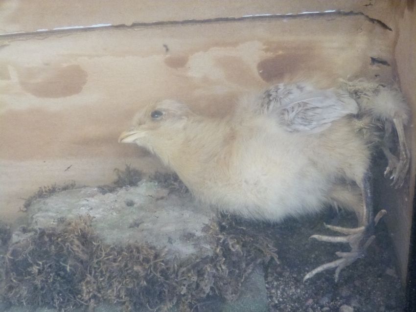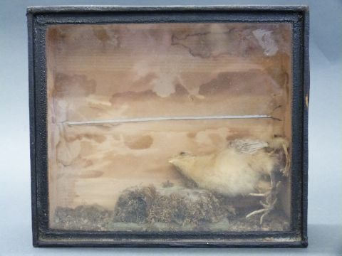 A cased Victorian taxidermy study of a four-legged chick 19cm x 21cm